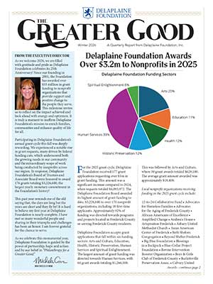 Delaplaine Foundation, Inc., is a private family foundation based in Frederick, Maryland, dedicated to the enrichment of communities, families, and quality of life for all. We do so by supporting programs to strengthen the arts and culture, educational advancement, health, and human services in Frederick County, as well as historical preservation and spiritual enlightenment in Frederick County and surrounding areas.